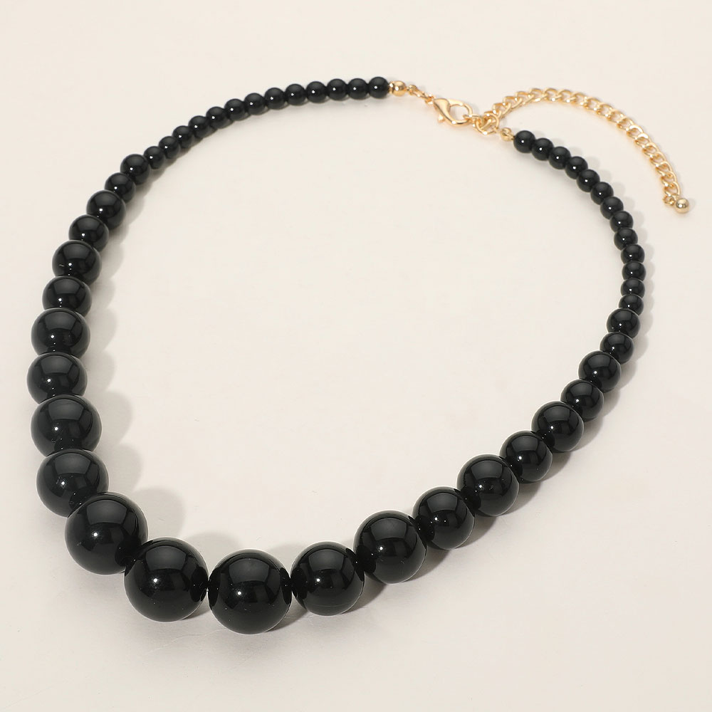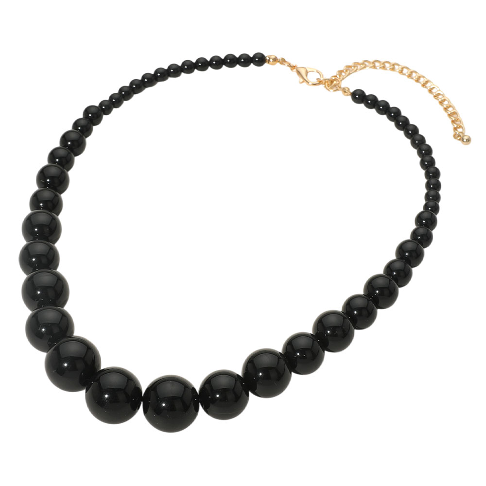 Details • Necklace Size : 17.5" + 3.5" L • Decor Size : 0.75" L • Chic statement necklace featuring graduated round beads and a secure lobster clasp with an adjustable extender chain. A bold and polished accessory that elevates both casual and formal looks with effortless elegance. • Lead and Nickel Compliant