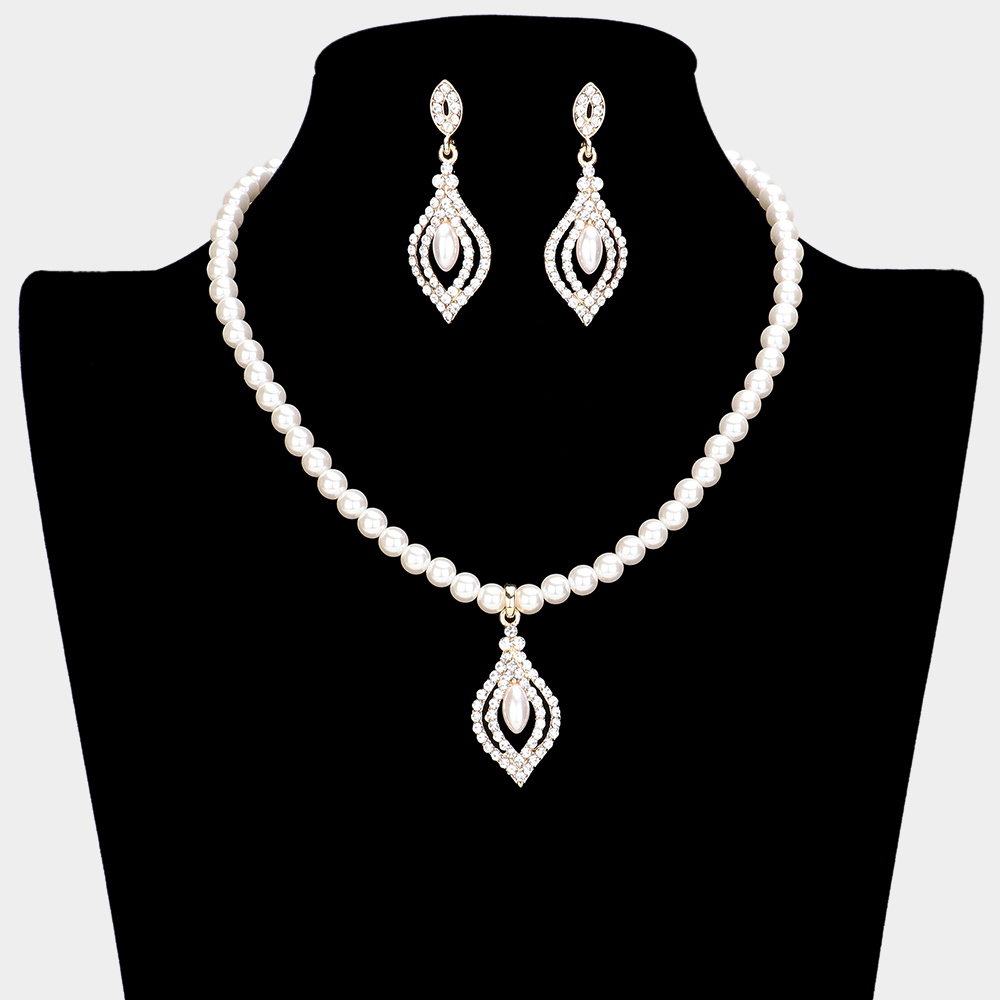 Gold Dipped Cubic Zirconia Pearl Pendant Necklace