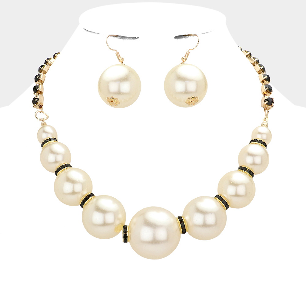 Multi Sized Pearl Round Stone Necklace