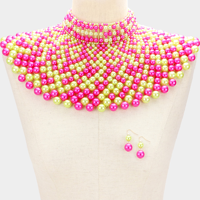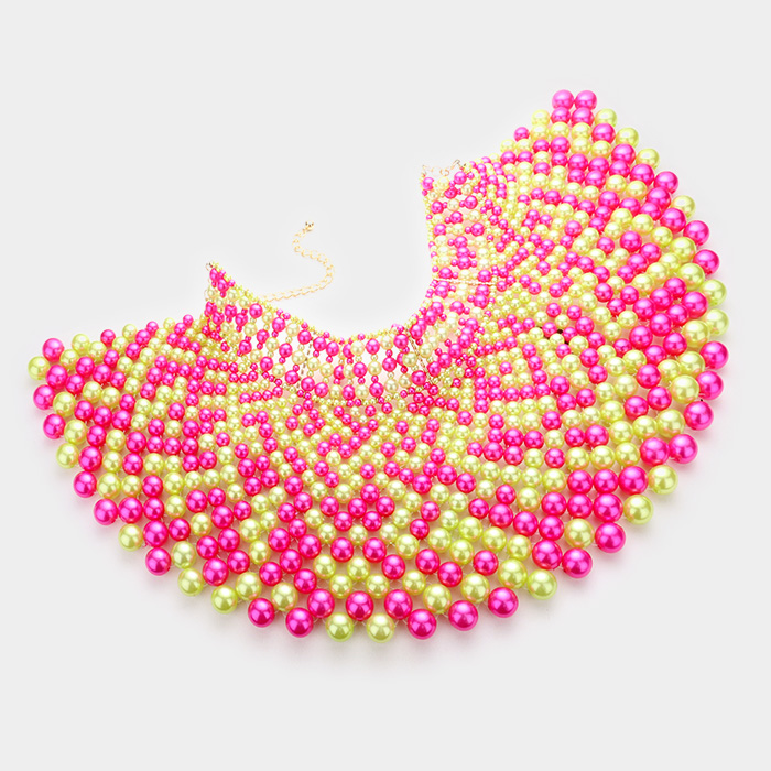 Marbled Round Shaped Beads Pearl Beaded Necklace