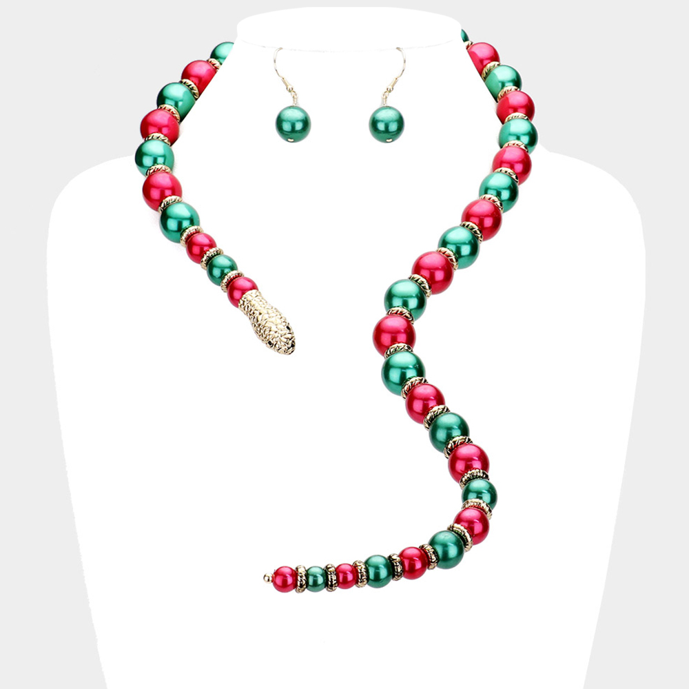 4PCS - Peace Pearl Charm Metal Link Glass Beads Stretch Multi Layered Bracelets