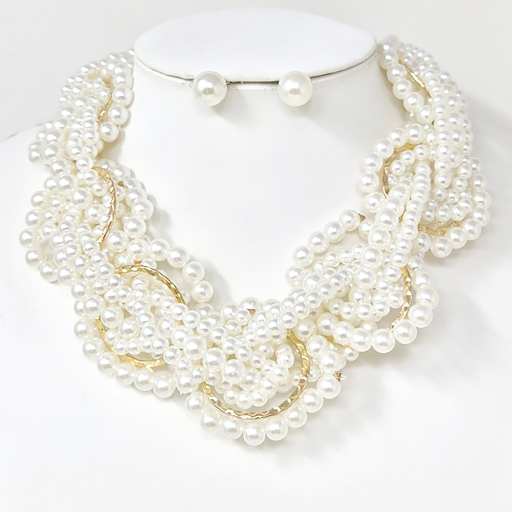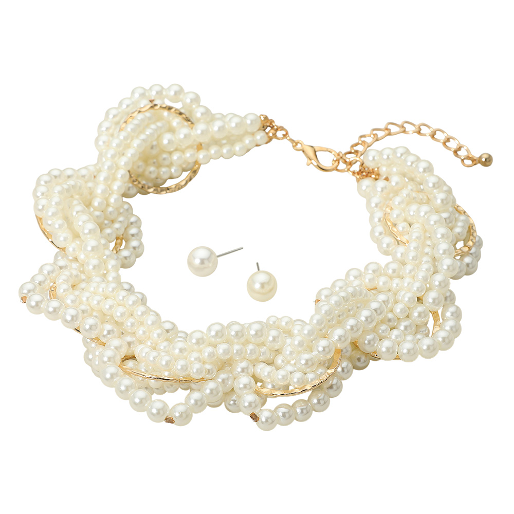 Pearl Beaded Twisted Multi Strand Statement Necklace