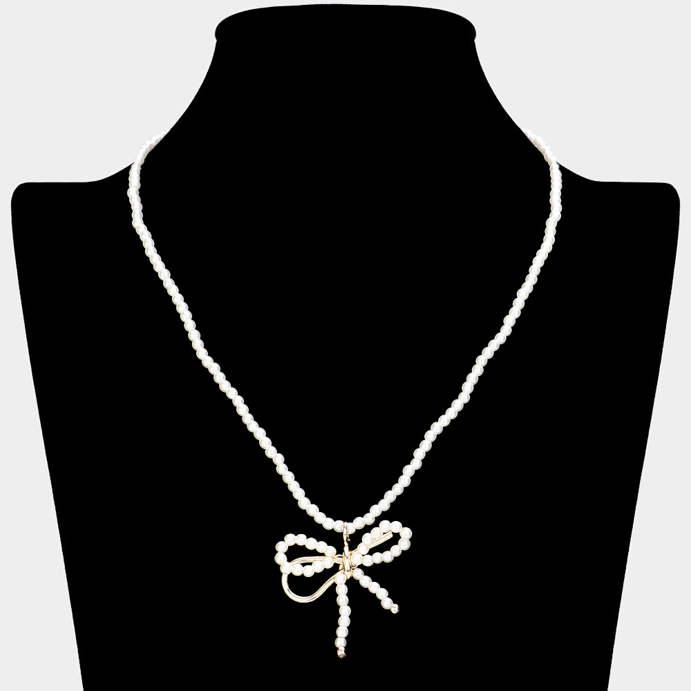 -H- Initial Monogram Pearl Beaded Watch Printed Long Necklace