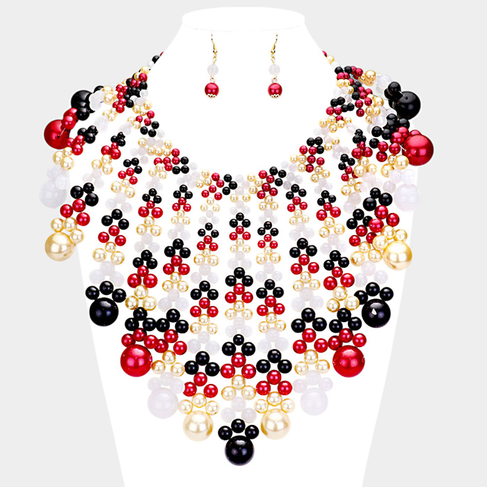 Pearl Accented Triple Layered Mesh Bib Necklace