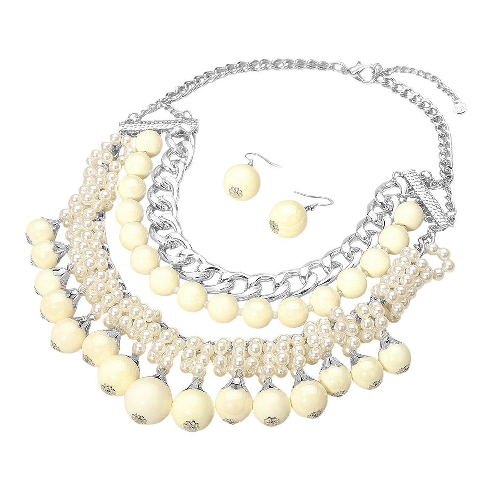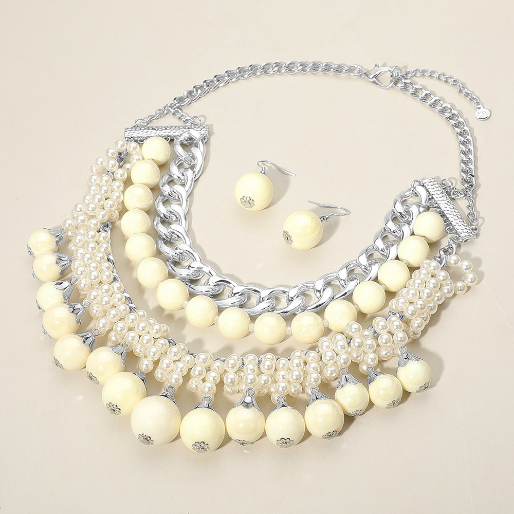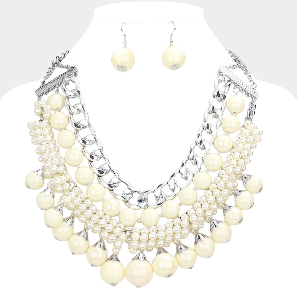 Pearl Accented Rhinestone Leaf Cluster Necklace