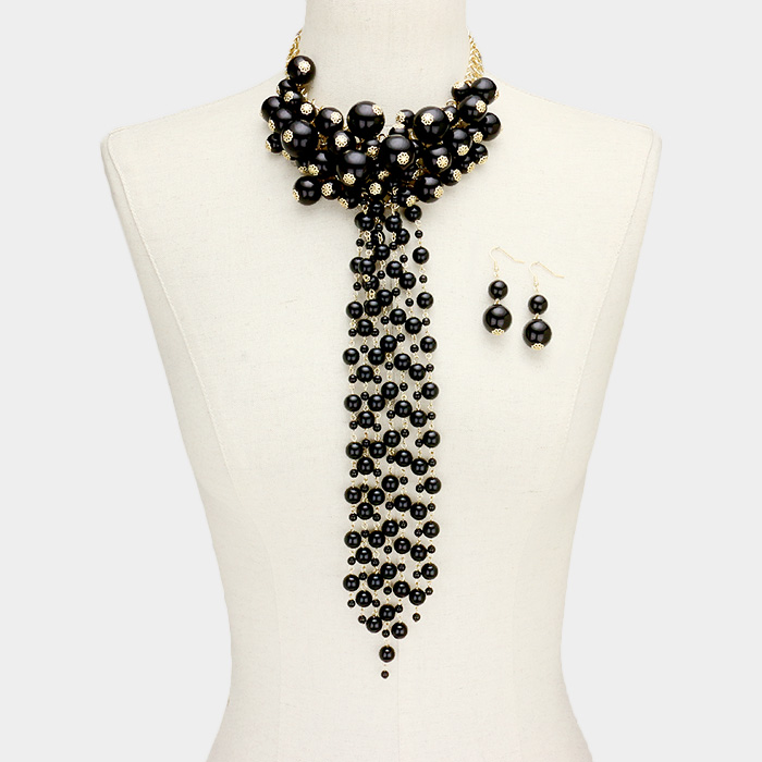 Pearl Cluster Vine Fringe Bib Necklace