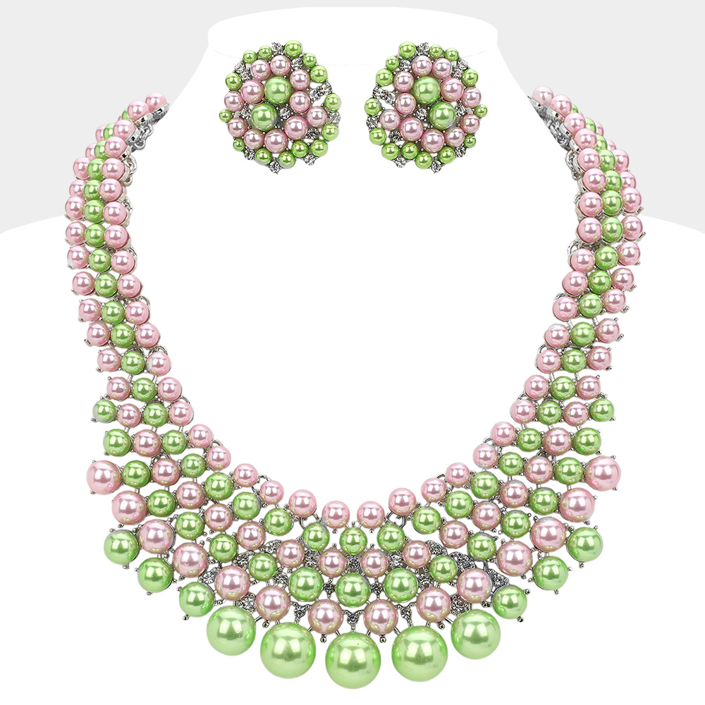 Draped Multi-Layer Pearl Strand Bib Necklace
