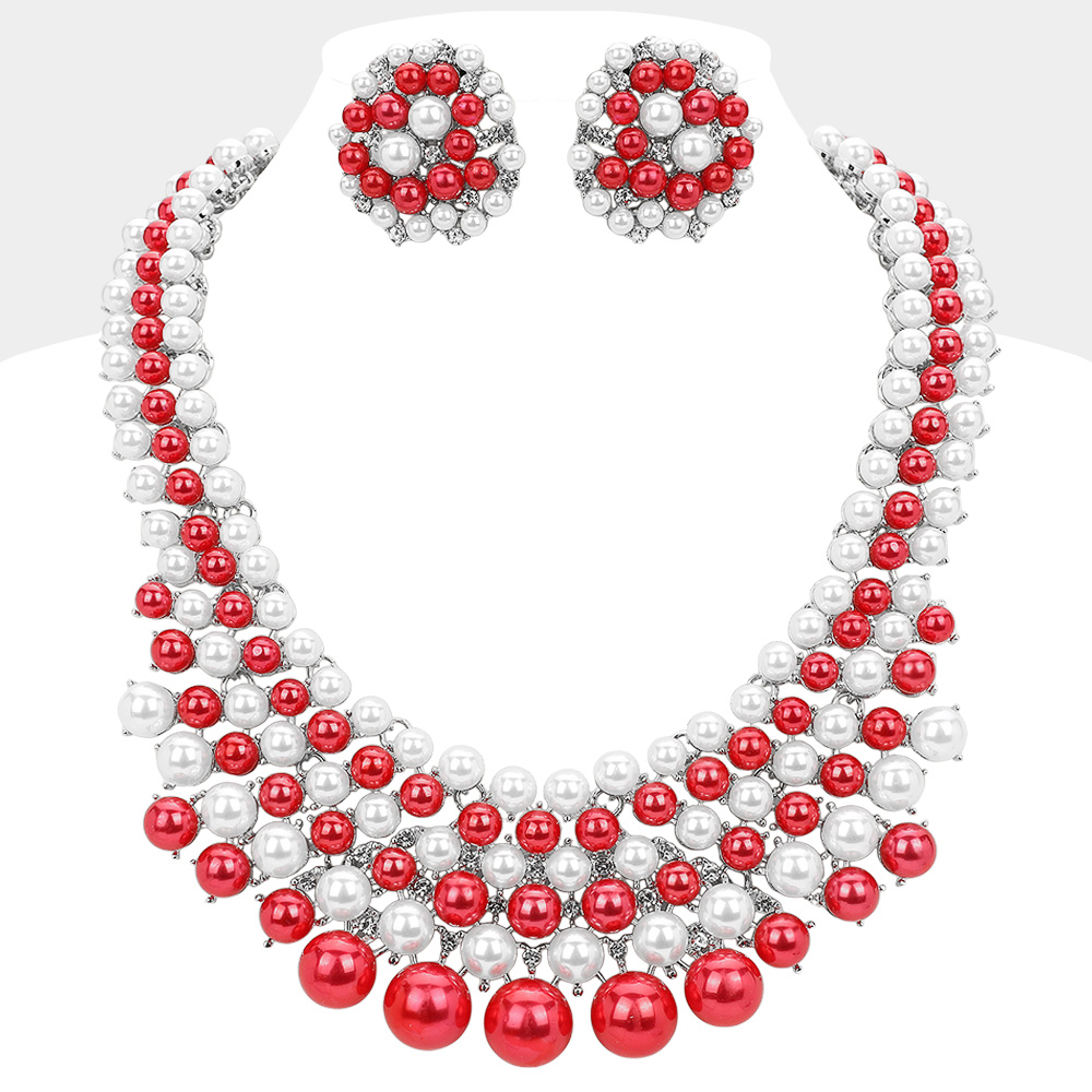 Heart Butterfly Bow Pearl Flower Charm Station Necklace