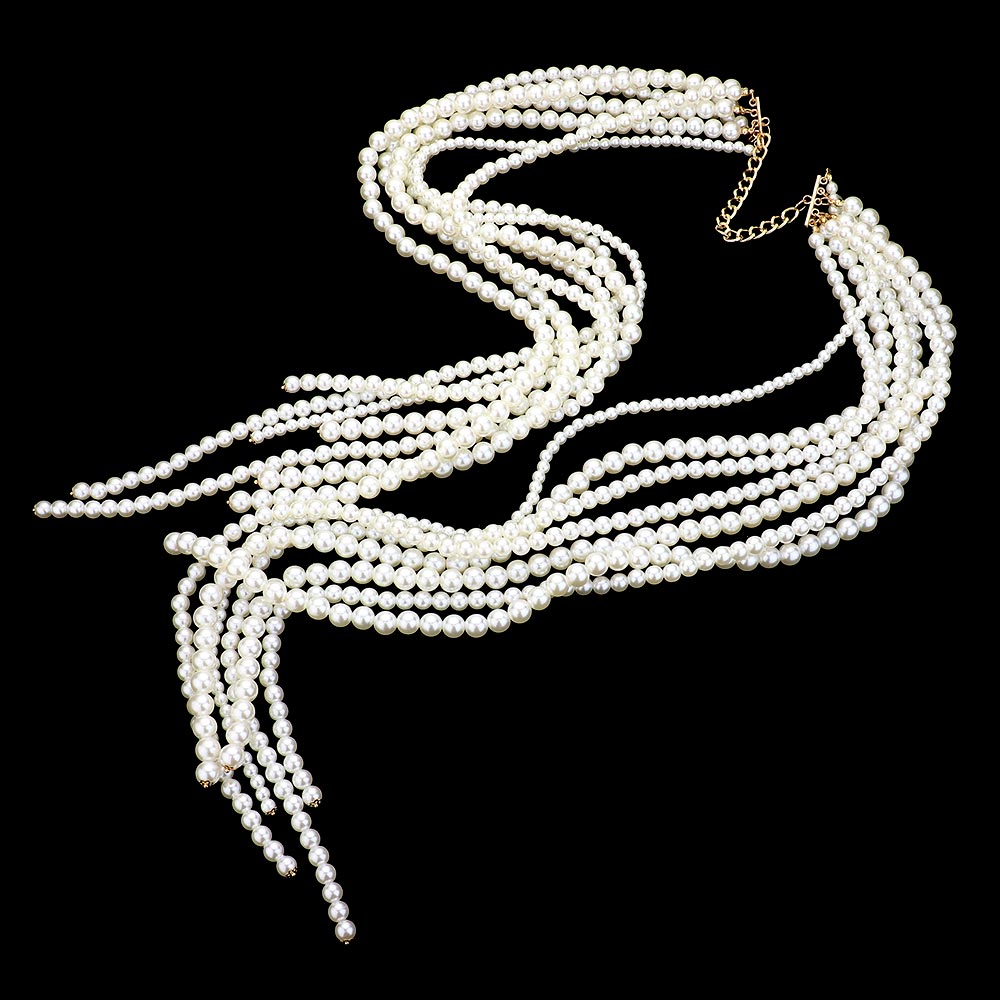 Chunky Multi Strand Pearl Bib Necklace