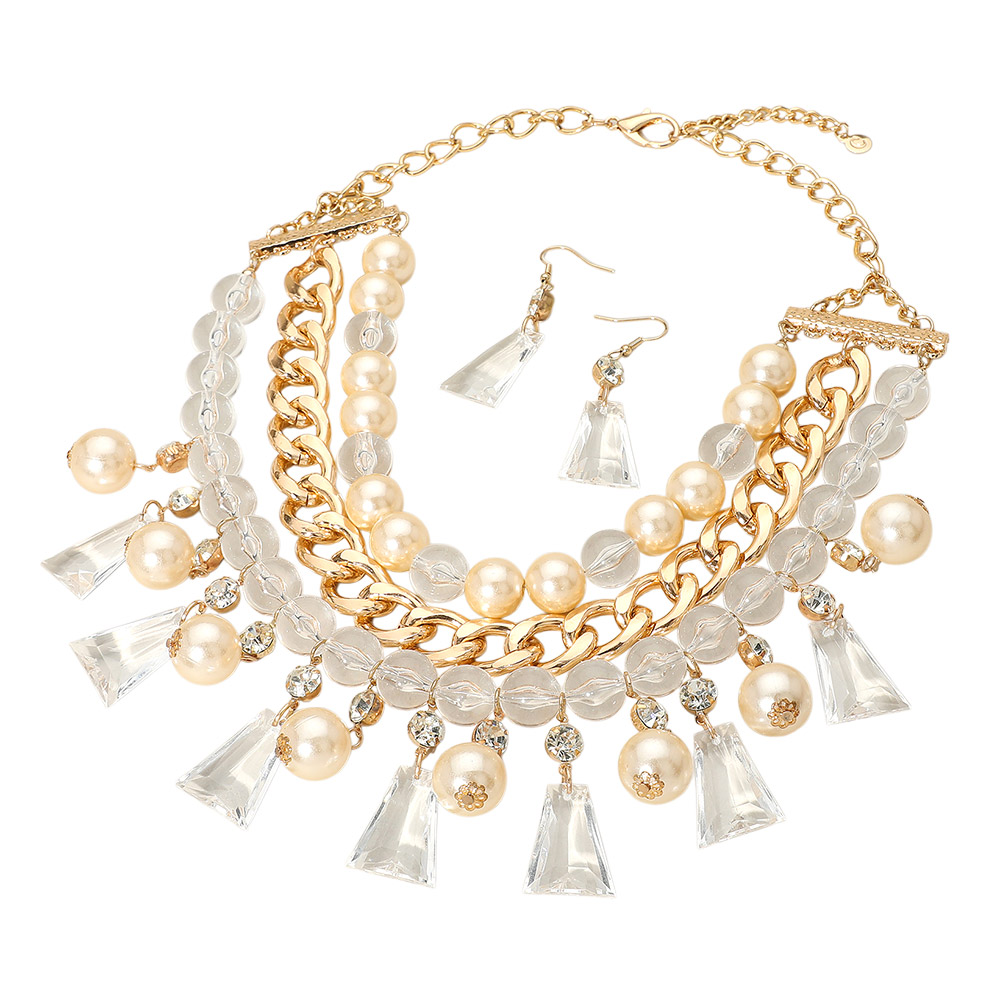 Pearl Round Teardrop Stone Accented Evening Necklace