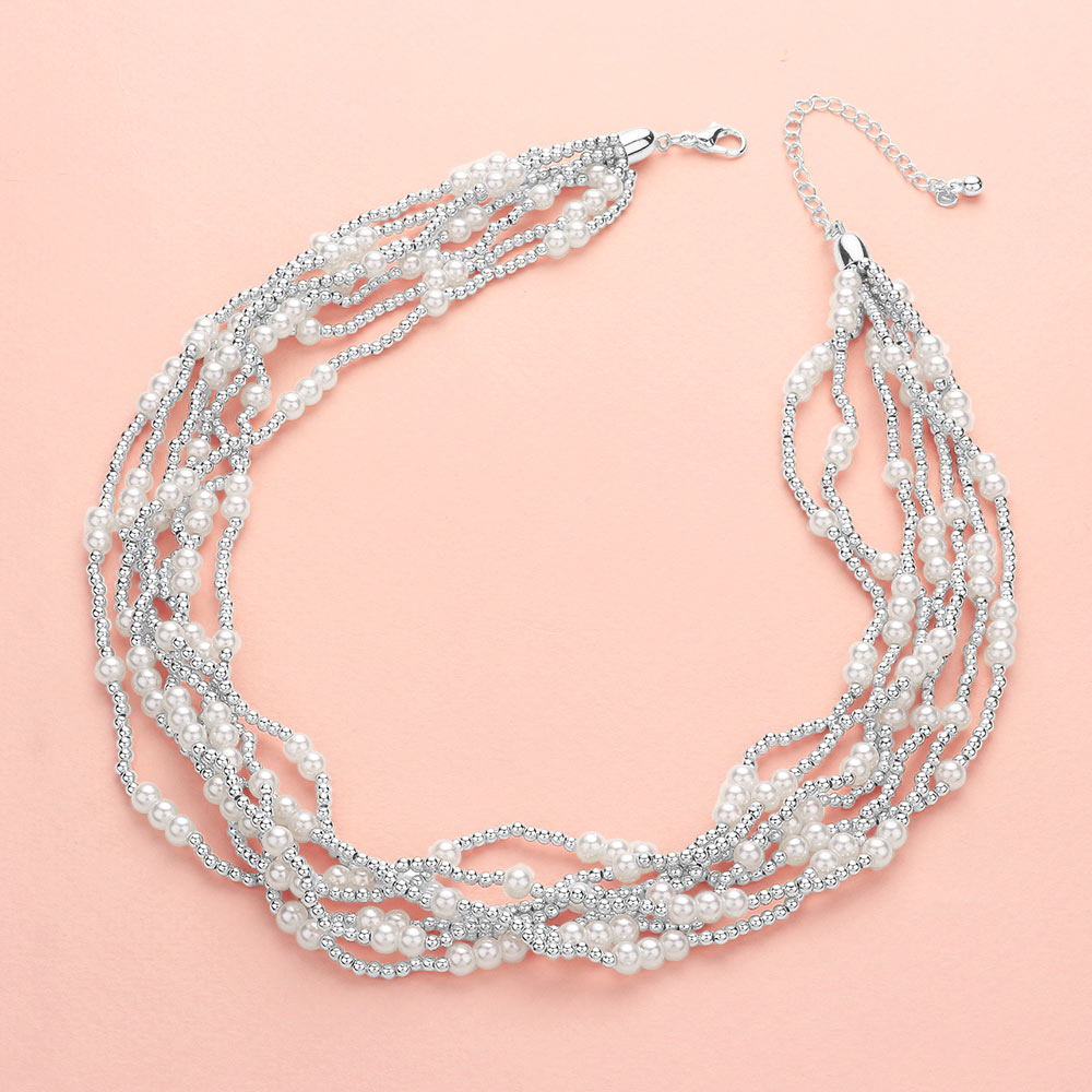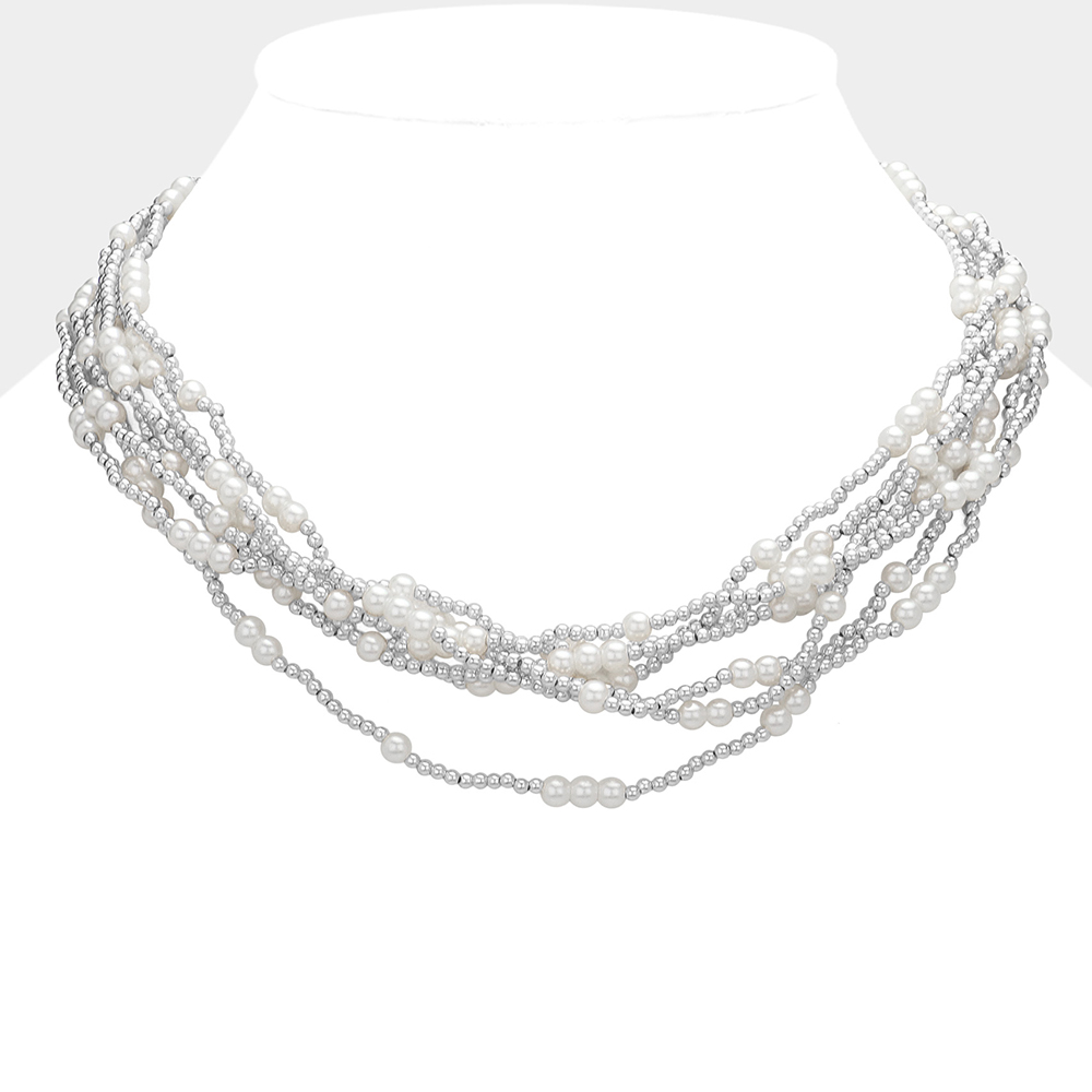 Details • Necklace Size : 16.5" + 3" L • Decor Size : 1" L • Enhance your jewelry collection with this multi-strand beaded statement necklace. Featuring layered strands for a bold yet refined look, it’s the perfect accessory for both casual and formal styles. A versatile piece that adds sophistication and timeless appeal. • Lead and Nickel Compliant