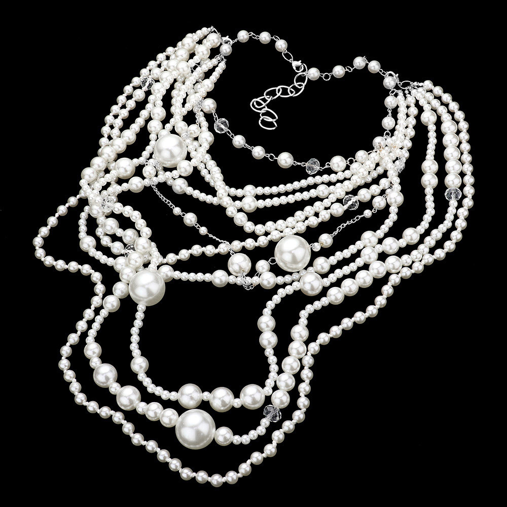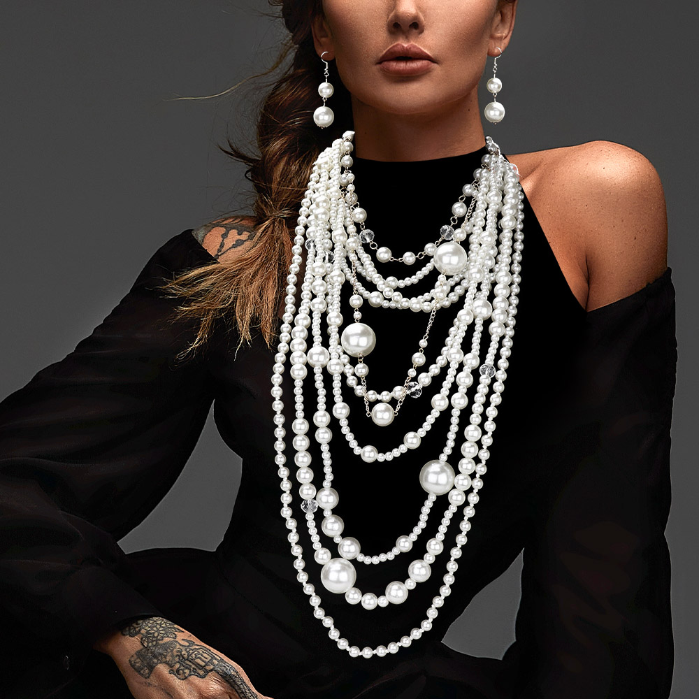 5PCS - Metal Ball Pearl Beaded Stretch Multi Layered Bracelets