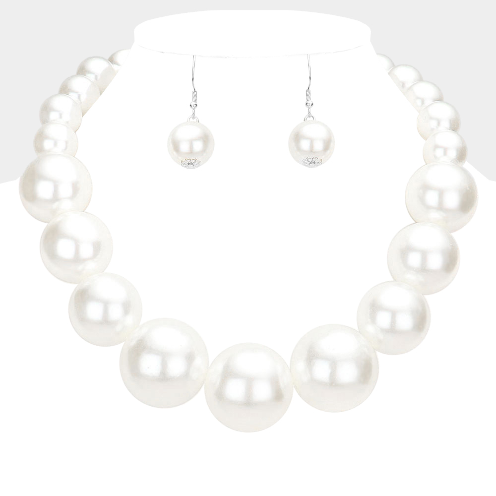 Details • Necklace Size : 18" + 4" L • Decor Size : 1.2" L • Earring Size : 1.5" L • Elegant graduated bead necklace paired with matching drop earrings for a coordinated, polished look. Designed to create visual balance and timeless appeal, this jewelry set is ideal for statement styling, special occasions, and boutique collections seeking classic silhouettes with versatile, easy-to-wear elegance. • Lead and Nickel Compliant