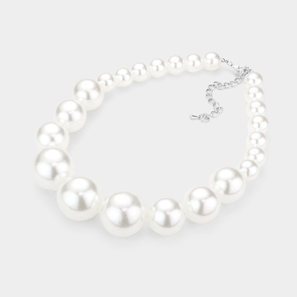 Geometric Crystal Rhinestone Detail Multi-Strand Pearl Necklace