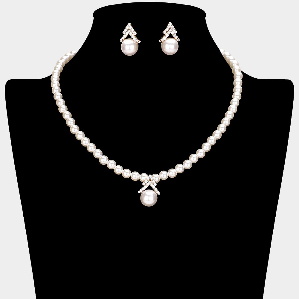 Gold Dipped Pearl Accented CZ Trimmed Pendant Necklace