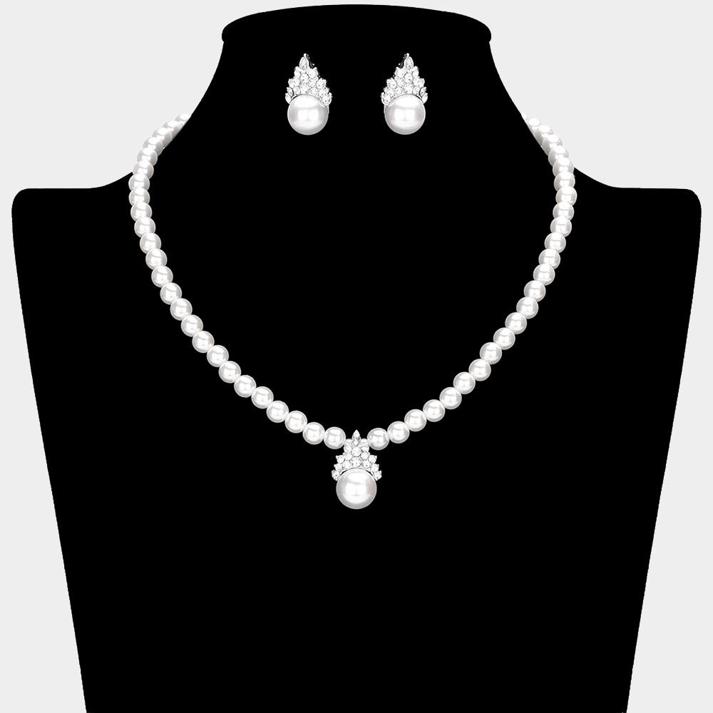 Pearl Accented Flower Stone Cluster Drop Evening Earrings