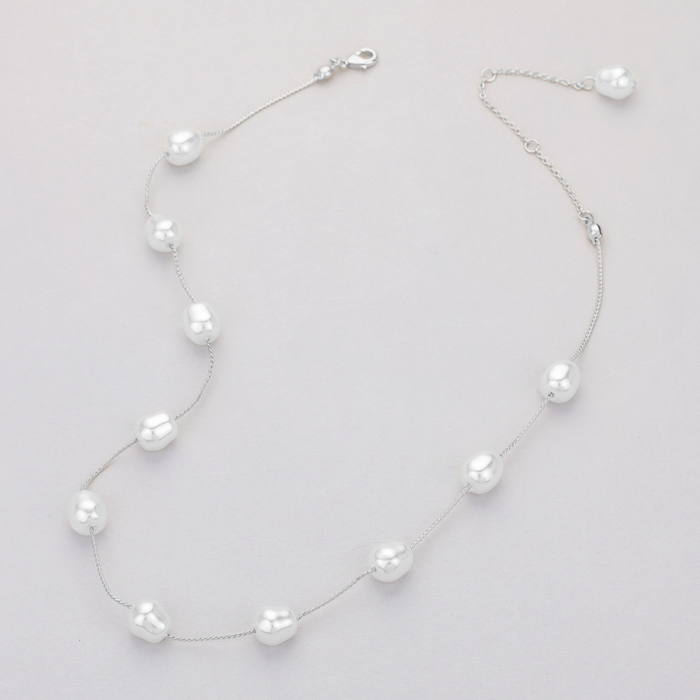 Marquise Glass Stone Cluster Pearl Embellished Vine Evening Necklace