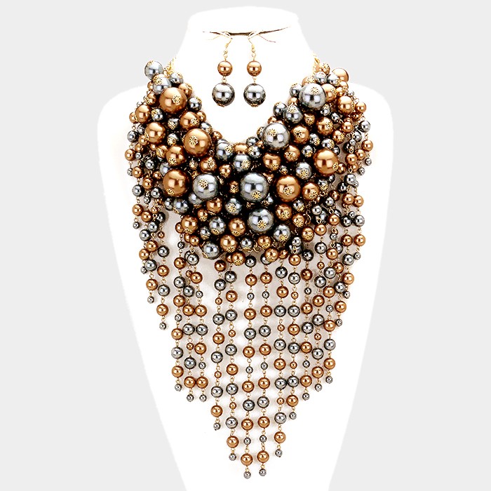 Pearl strand fringe bib necklace