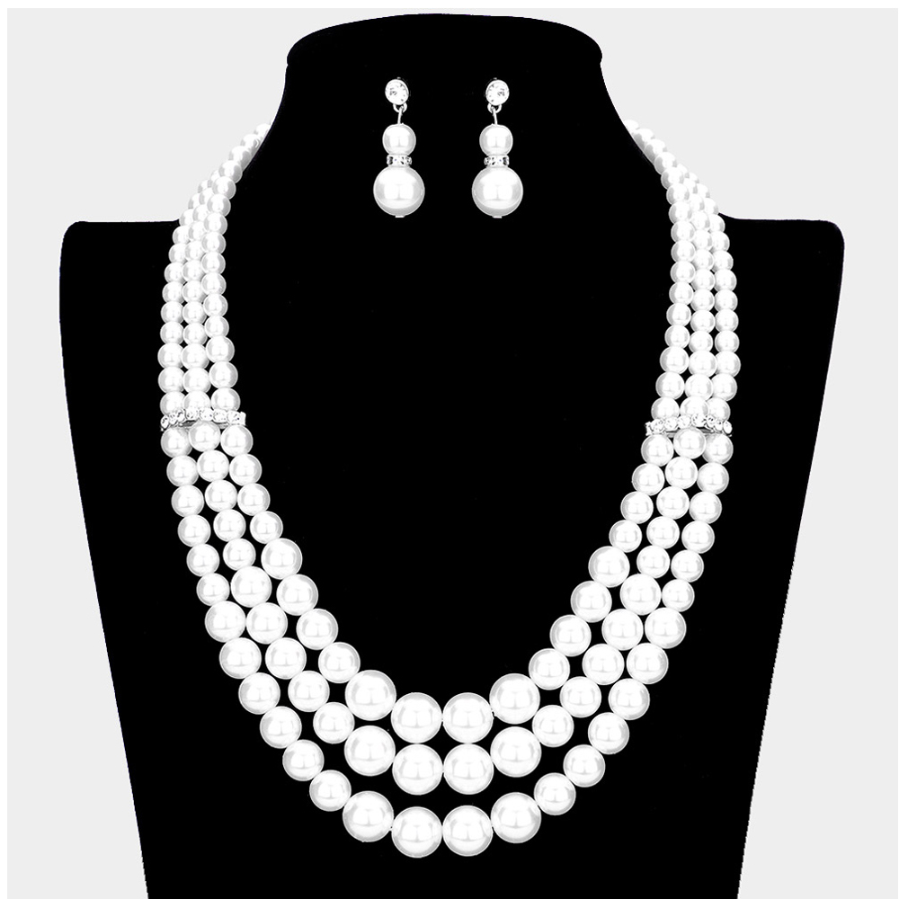 3PCS - Pearl Accent Metal Wooden Ball Beaded Stretch Multi Layered Bracelets