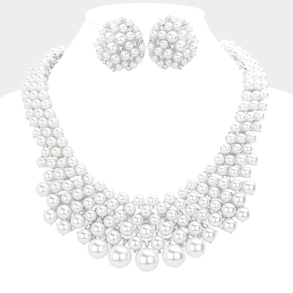 Metal Bow Pendant Floral Ceramic Ball Pearl Beaded Multi Layered Necklace