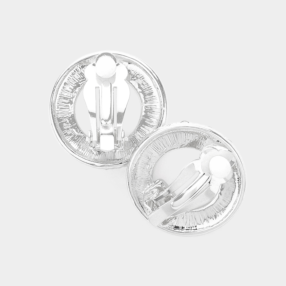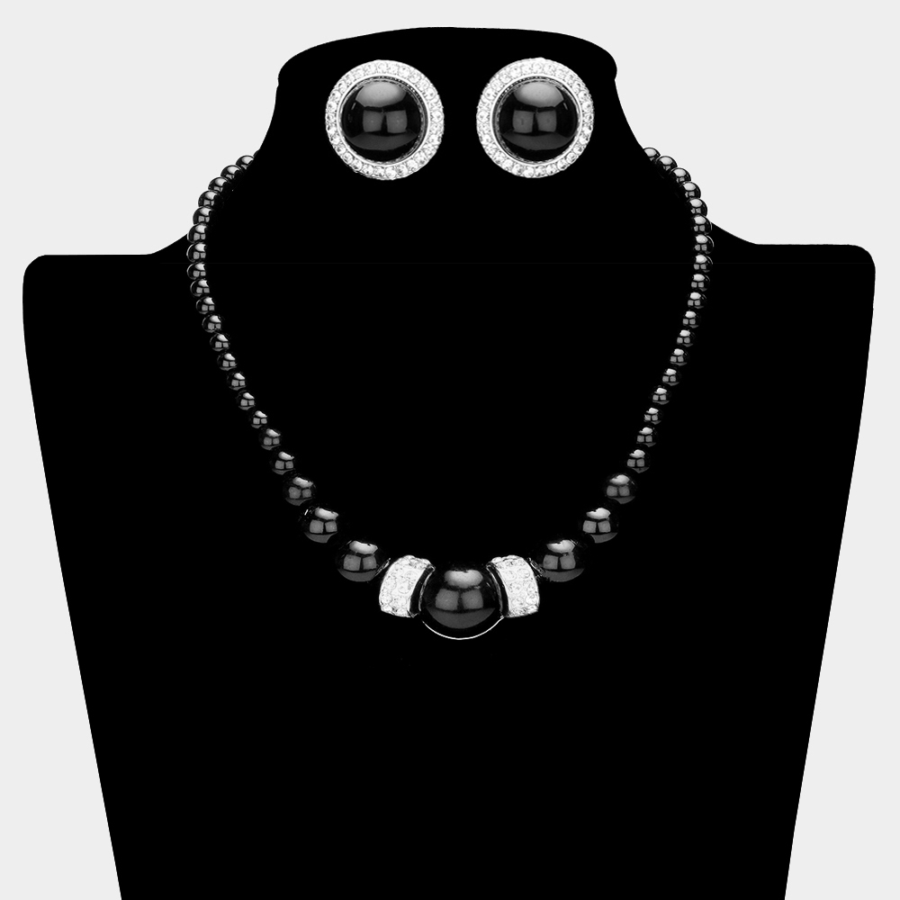 Oval Pearl Centered Bubble Stone Trimmed Pendant Necklace Clip On Earring Set