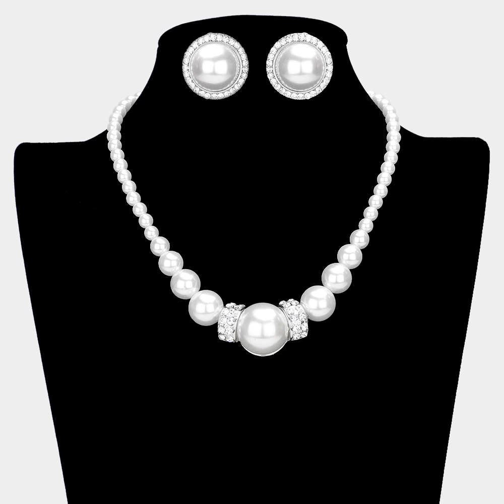 Pearl Round Teardrop Stone Accented Evening Necklace