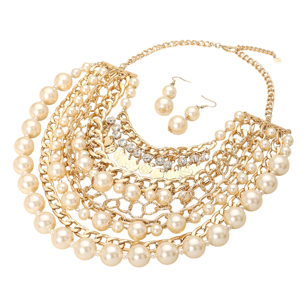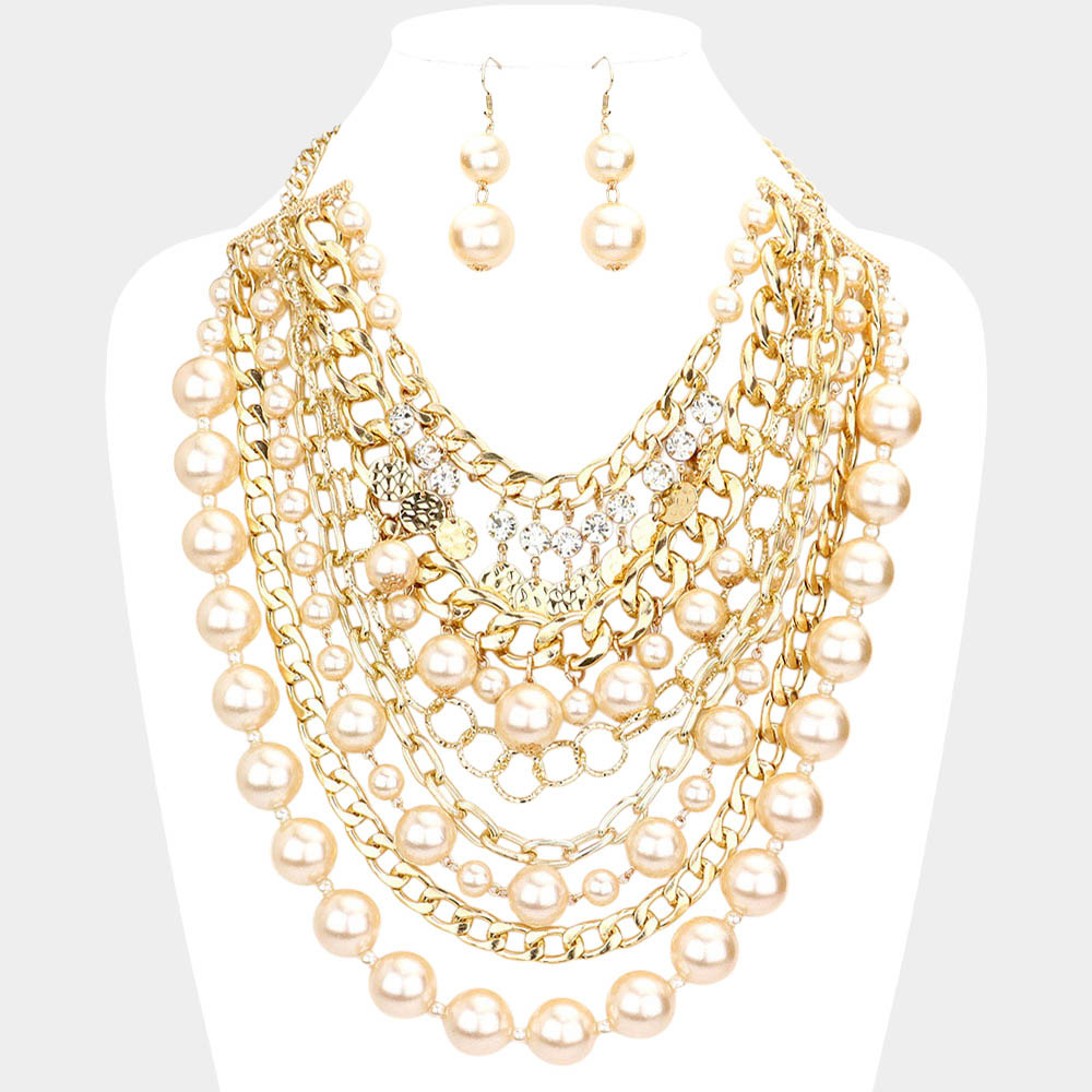 5PCS - Pearl Station Stretch Multi Layered Bracelets
