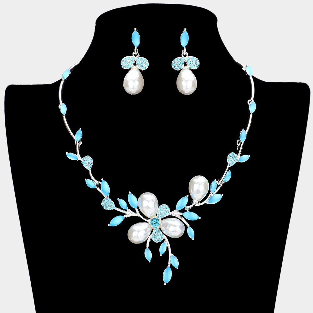 Teardrop Pearl Accented Leaf Cluster Necklace