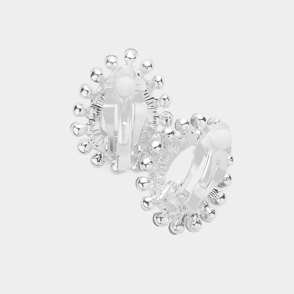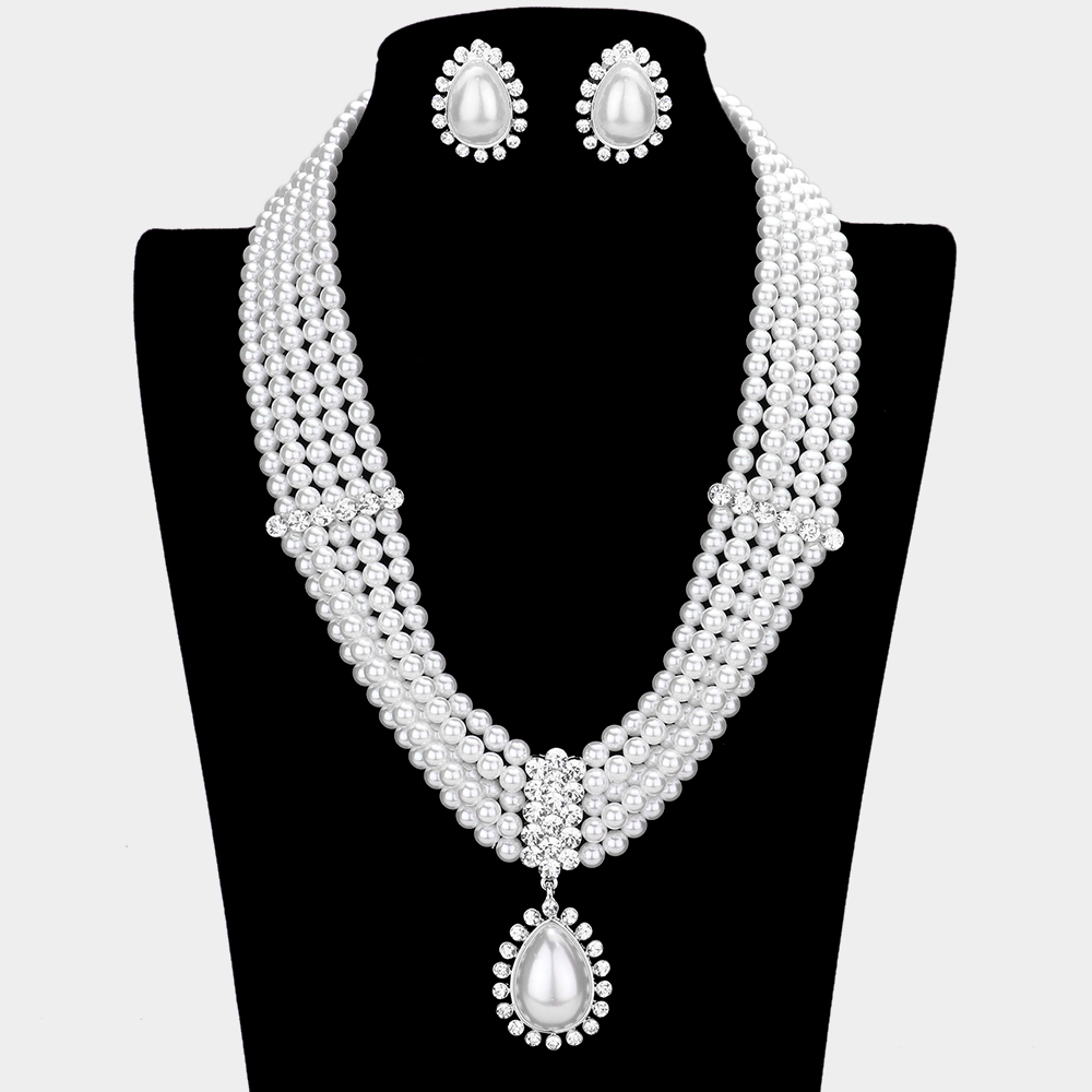 Teardrop Pearl Bubble Stone Trimmed Pendant Necklace Clip On Earring Set