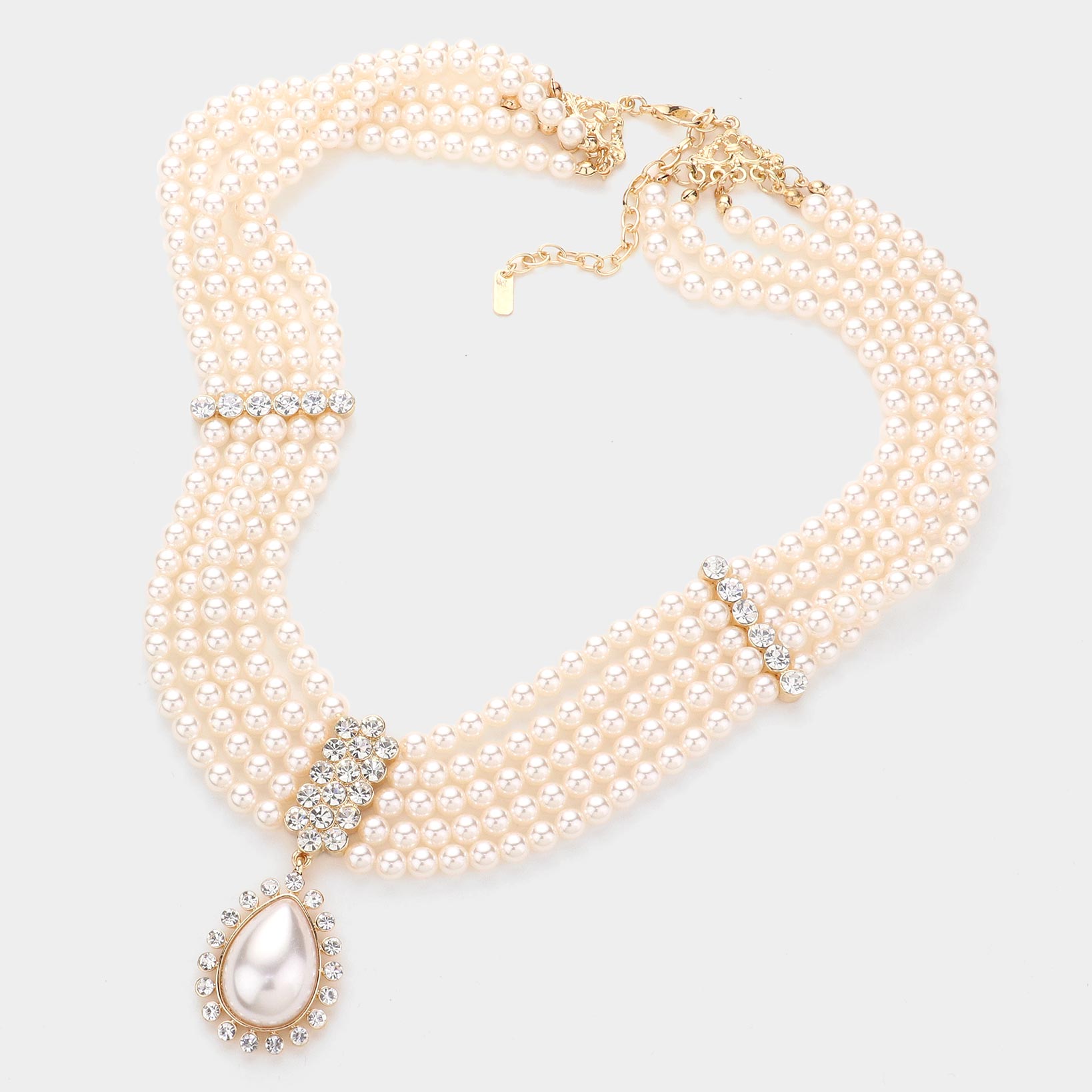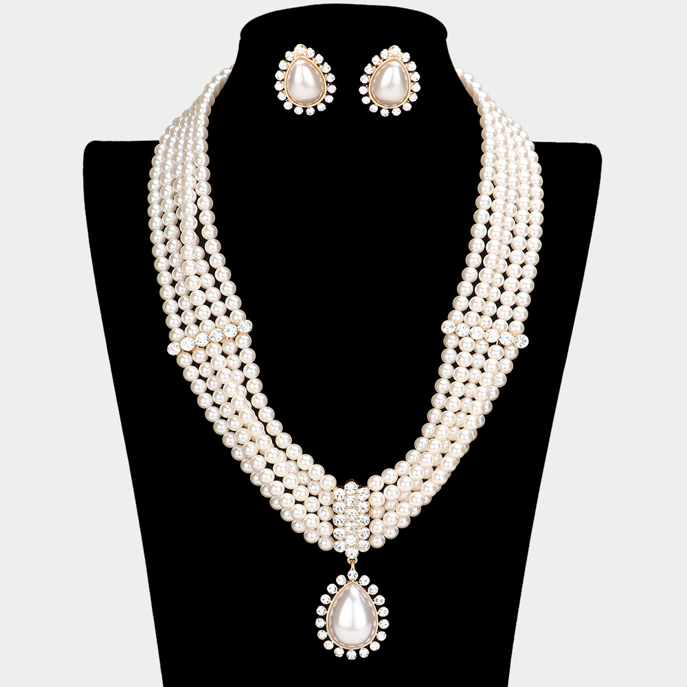 Chunky Multi Strand Pearl Bib Necklace