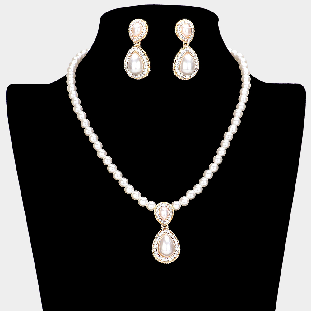 Pearl Pave Trimmed Teardrop Clip On Earrings