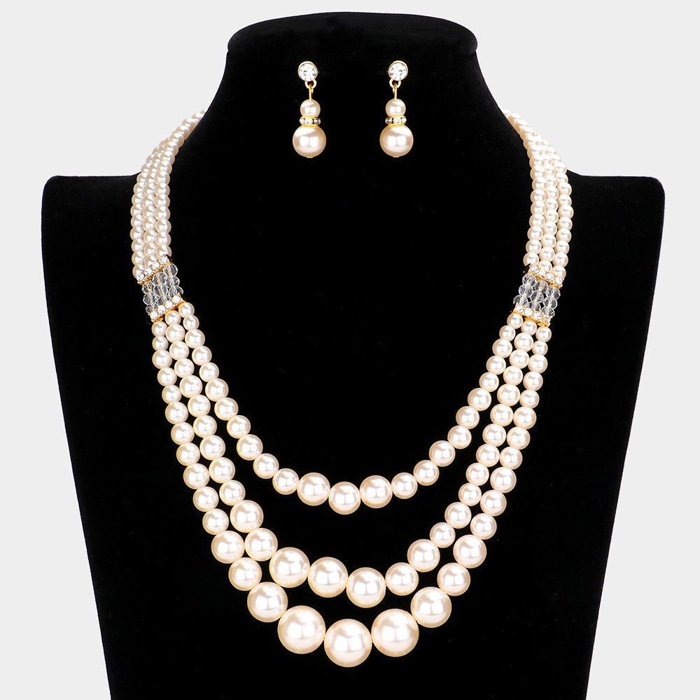 Stone Paved Vine Teardrop Pearl Dangle Evening Necklace
