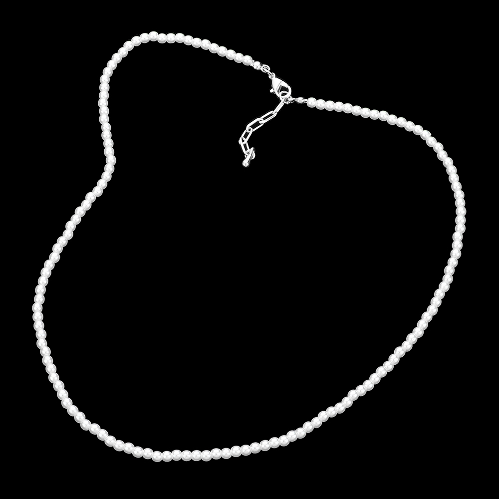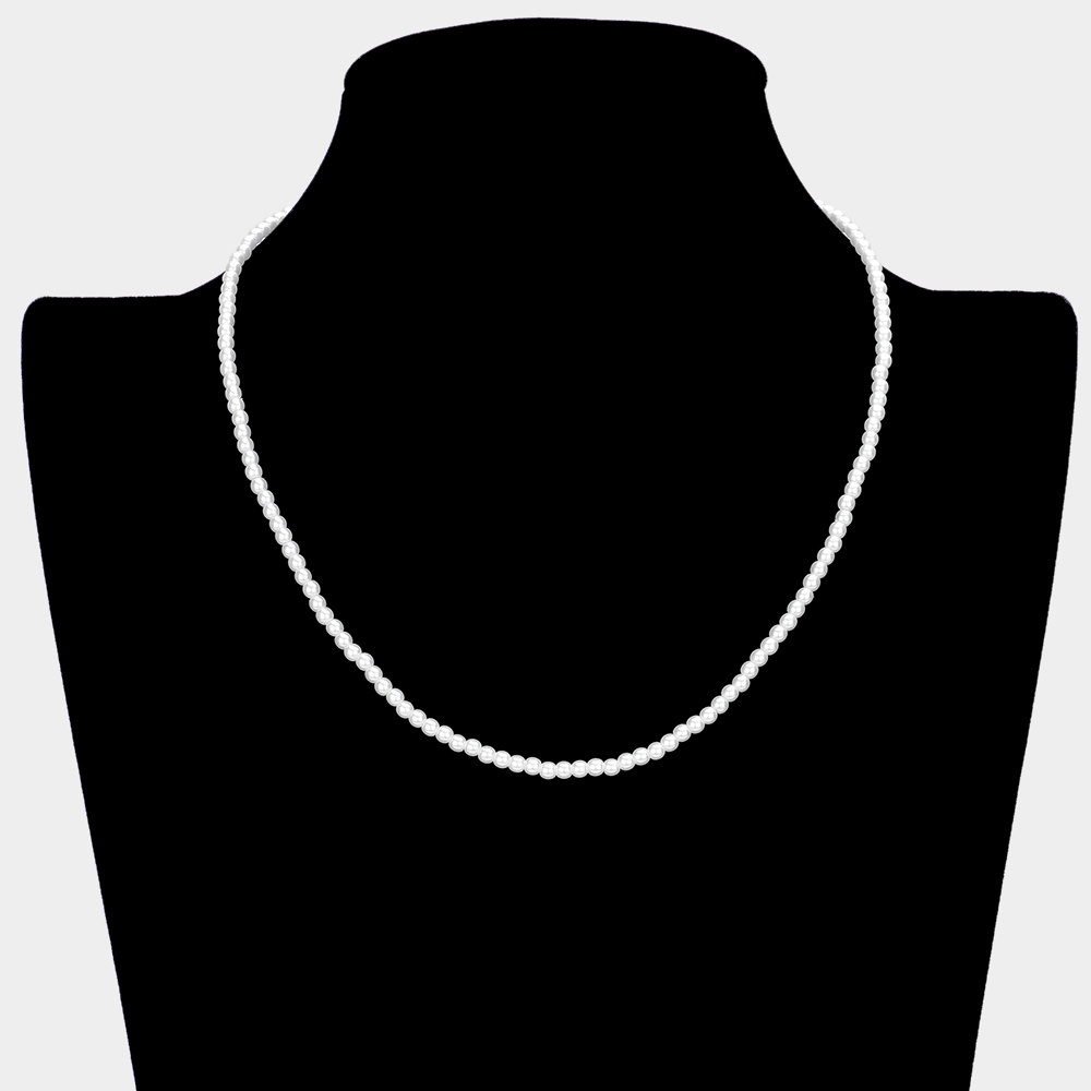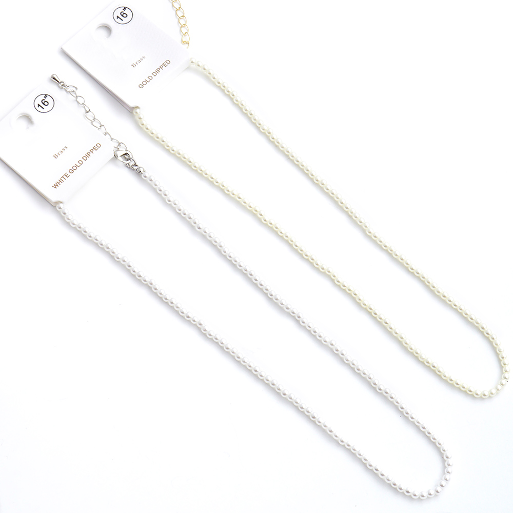 White Gold Dipped Brass Metal 3mm Pearl Necklace