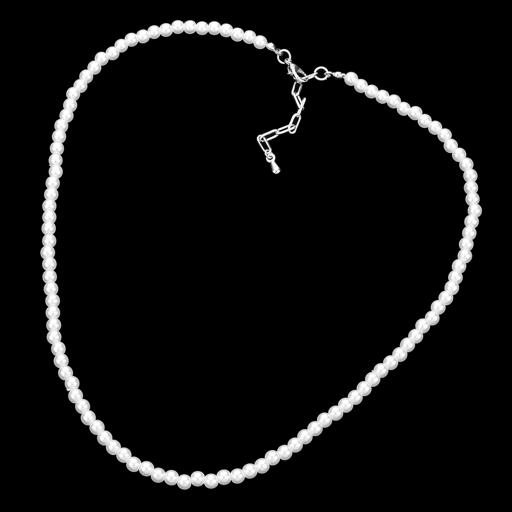 White Gold Dipped Brass Metal 4mm Pearl Necklace