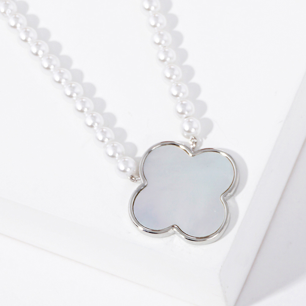 White Gold Dipped Mother of Pearl Quatrefoil Pendant Necklace