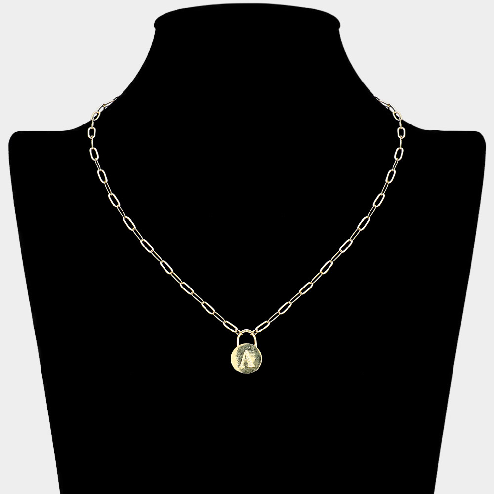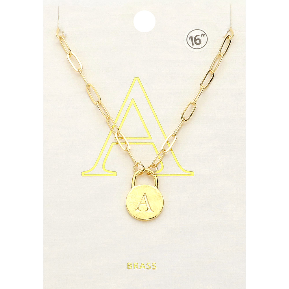 -N- Brass Metal Initial Monogram Lock Pendant Necklace