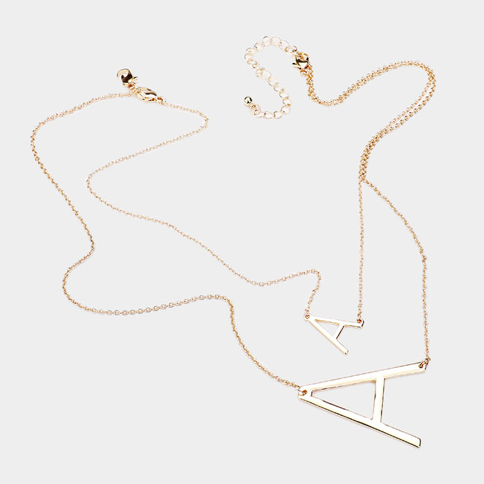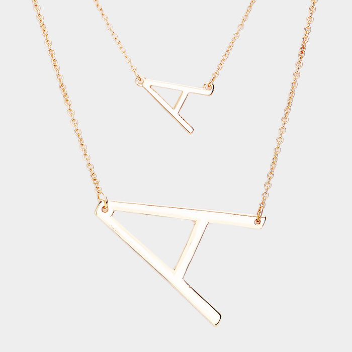 -A- Initial Monogram 2Row Strand Double Detachable Chain Necklace