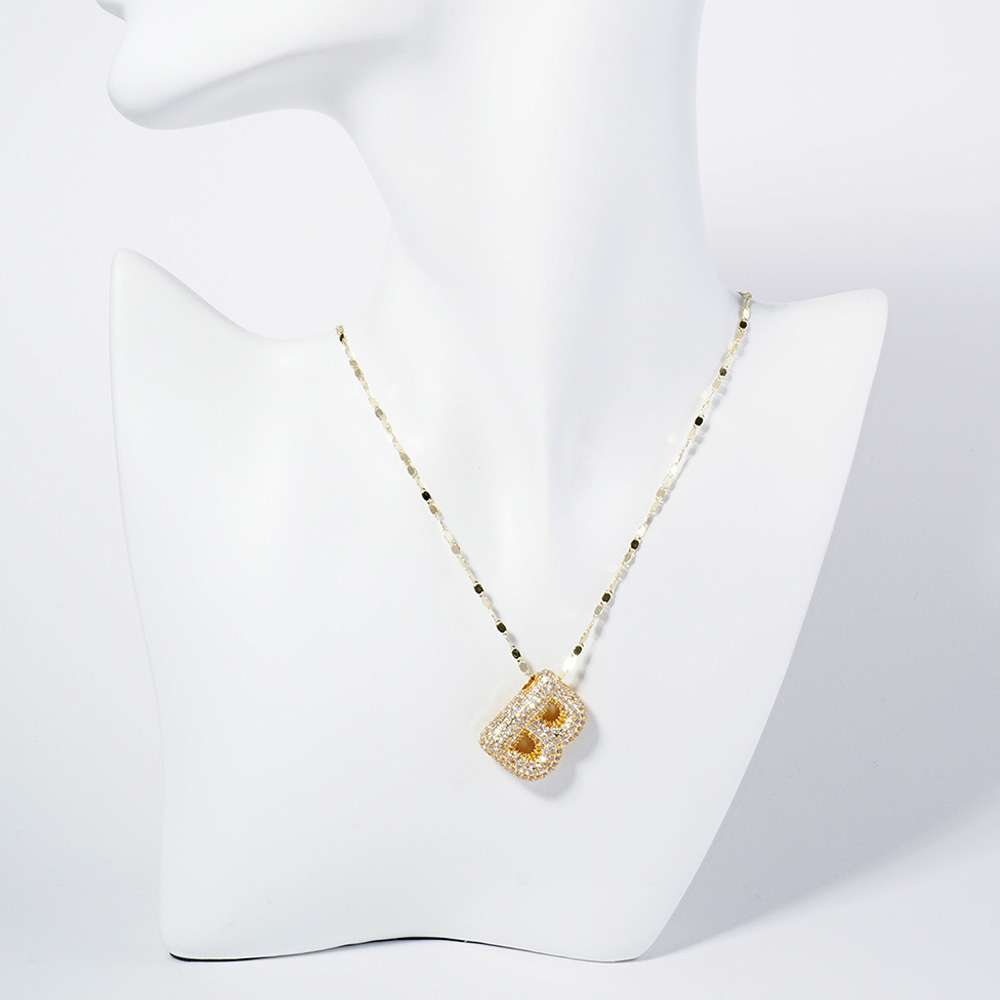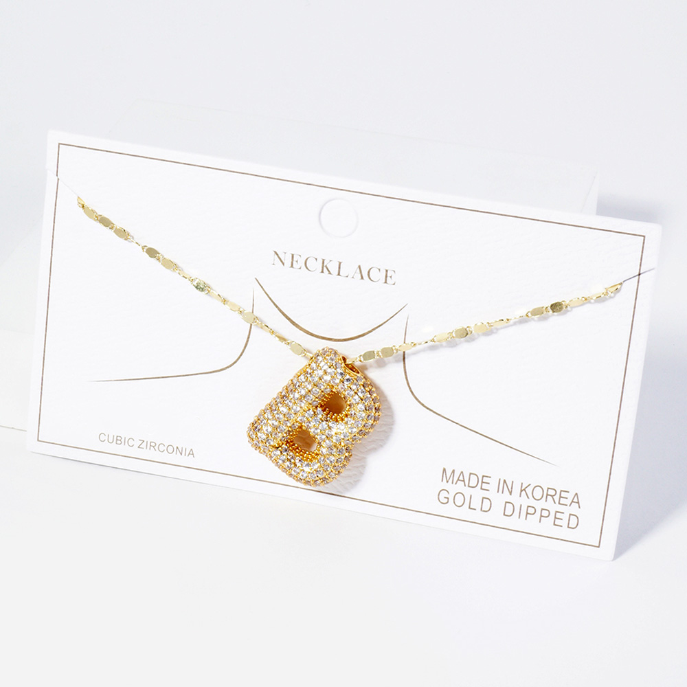 -B- Gold Dipped CZ Stone Paved Initial Monogram Pendant Necklace