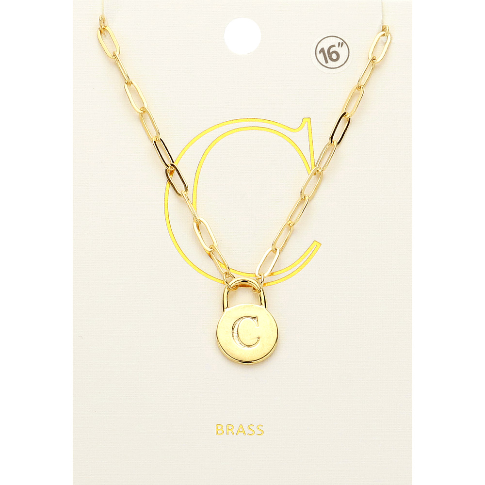 -N- Brass Metal Initial Monogram Lock Pendant Necklace