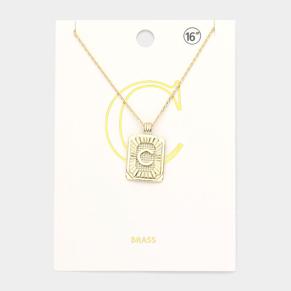 -Q- Brass Metal Rectangle Initial Monogram Pendant Necklace
