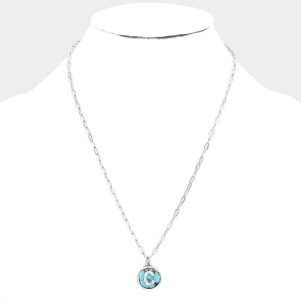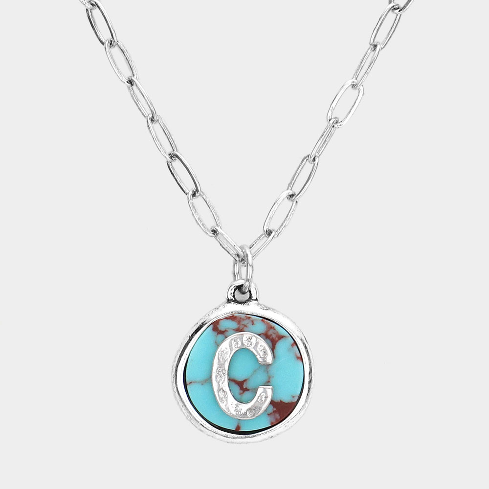 -c- Brass Initial Monogram Metal Pendant Necklace