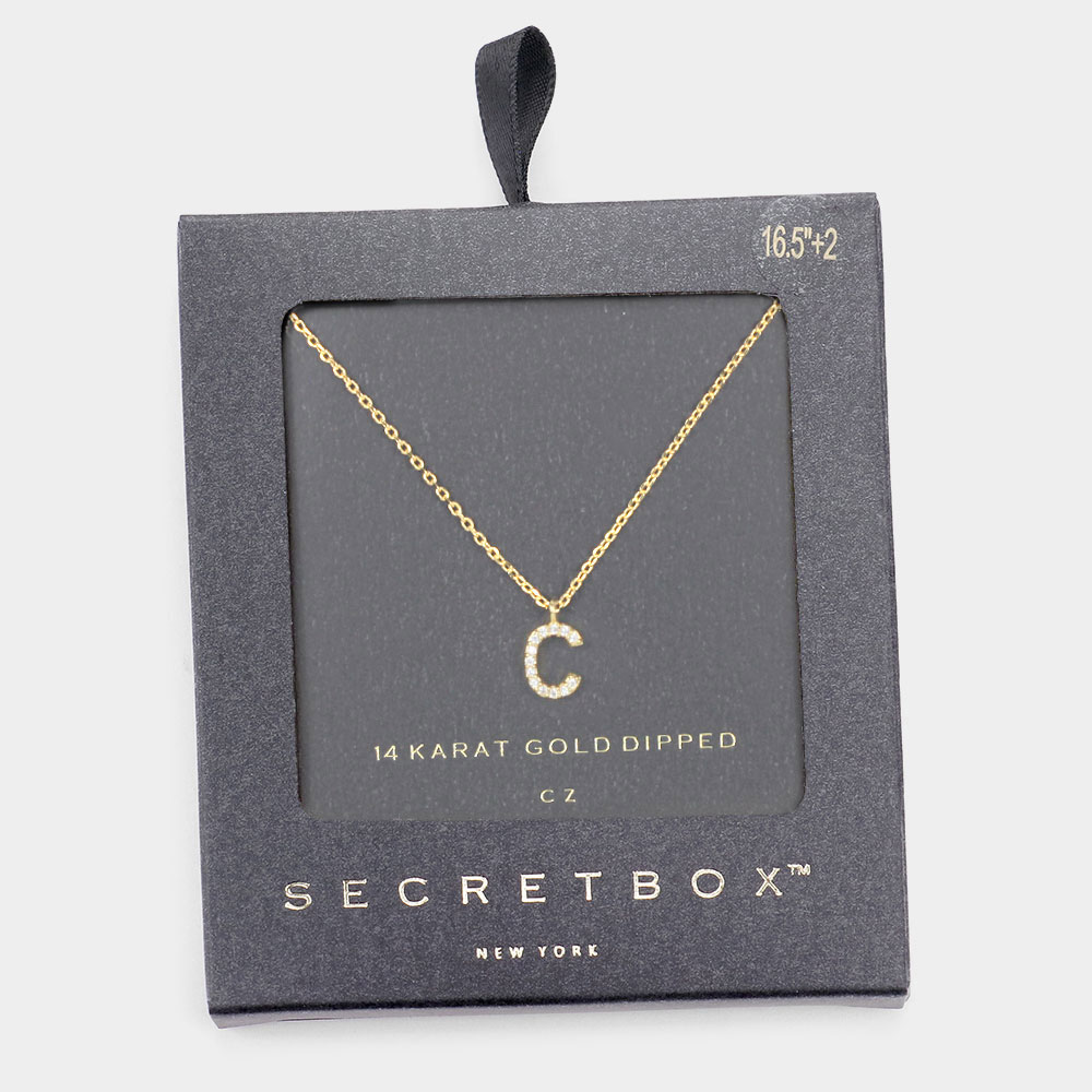 -X- Secret Box _ 14K Gold Dipped CZ Initial Monogram Pendant Necklace