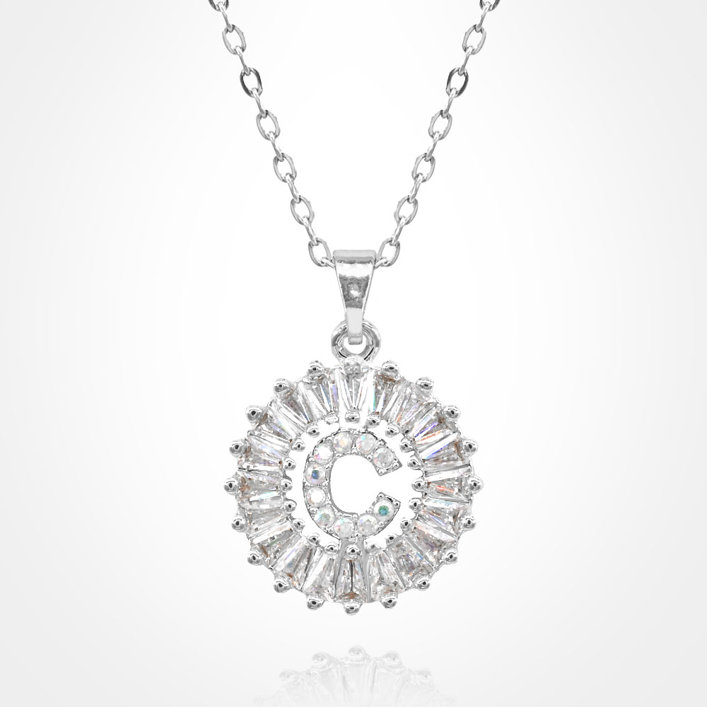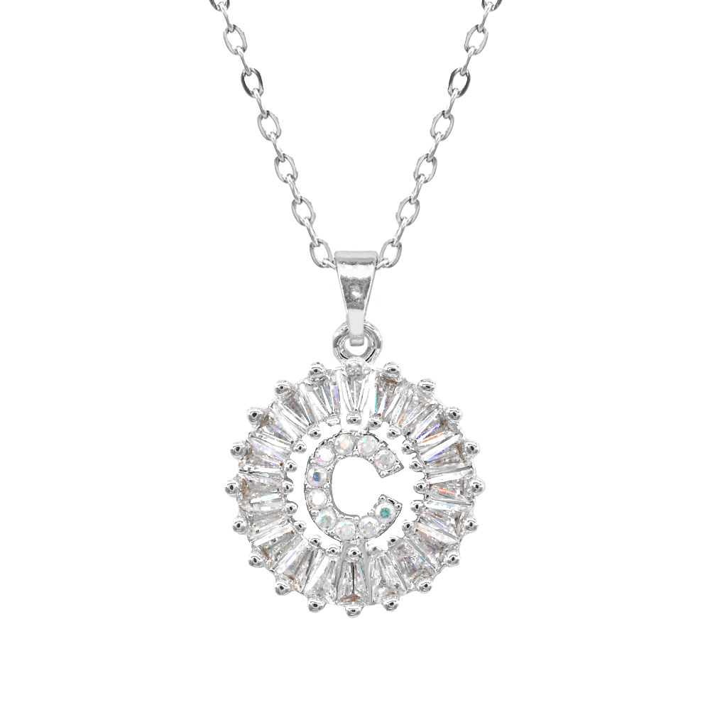 -C- Stainless Steel CZ Stone Embellished Round Initial Monogram Pendant Necklace -C- Stainless Steel CZ Stone Embellished Round Initial Monogram Pendant Necklace -C- Stainless Steel CZ Stone Embellished Round Initial Monogram Pendant Necklace