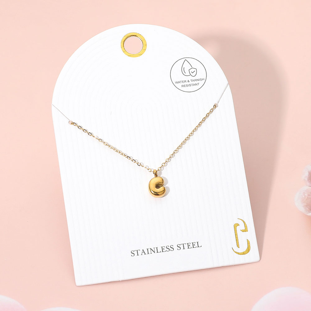 Details • Necklace Size : 18" L • Pendant Size : 0.3" L • Chic stainless steel necklace featuring a minimalist initial monogram pendant. Designed for everyday wear, this water and tarnish resistant piece adds a personal touch and effortless elegance to any outfit. • Stainless Steel