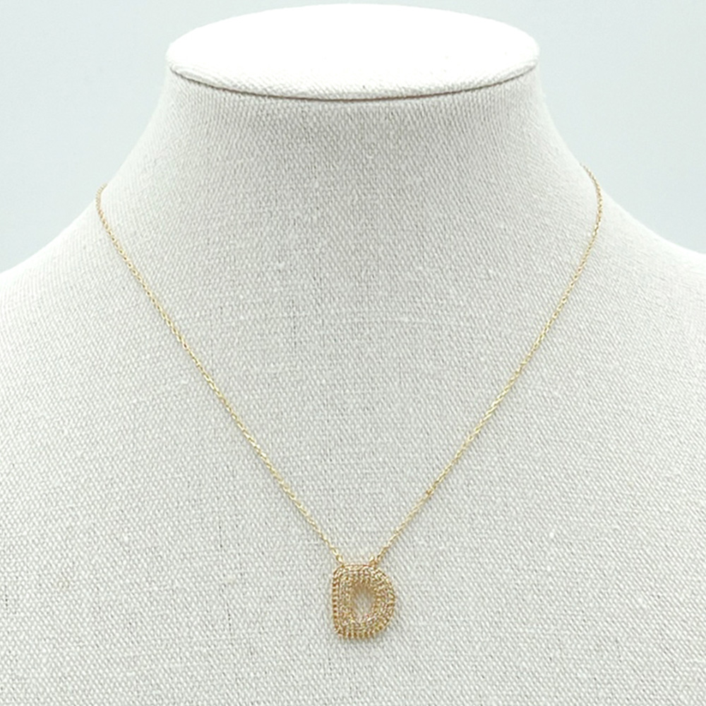 -O- 14K Gold Dipped CZ Stone Paved Initial Monogram Pendant Necklace