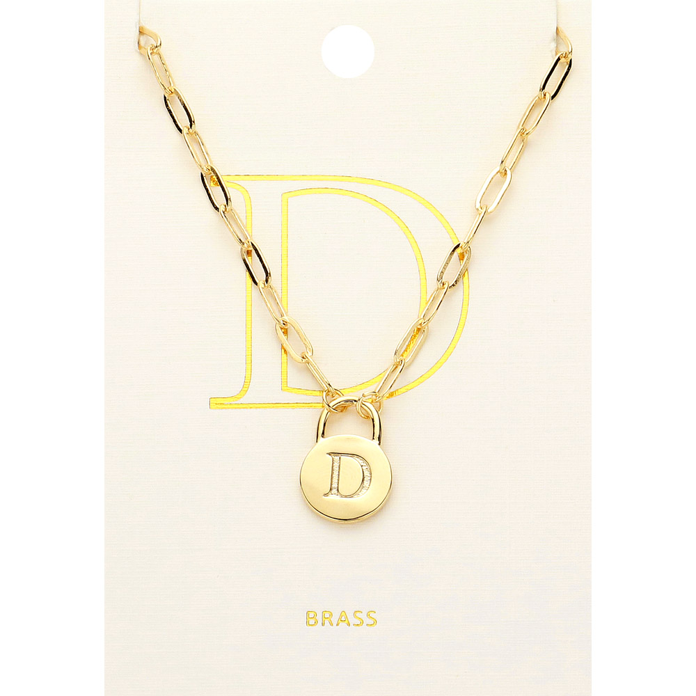 -N- Brass Metal Initial Monogram Lock Pendant Necklace