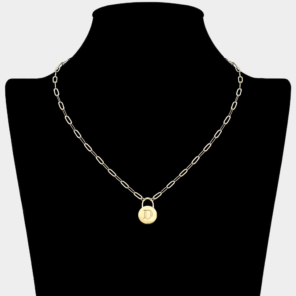 -A- Brass Metal Initial Monogram Lock Pendant Necklace
