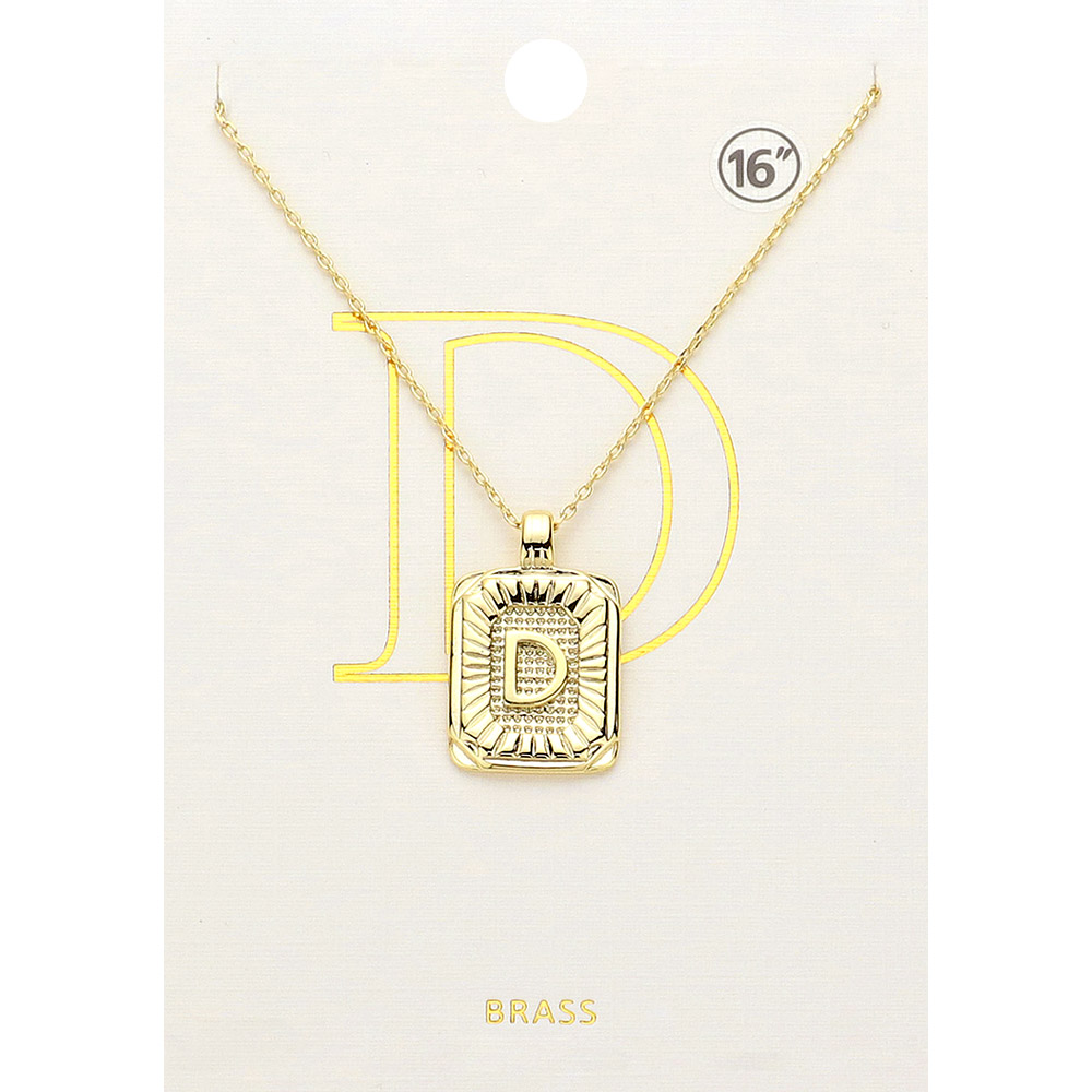 -N- Brass Metal Rectangle Initial Monogram Pendant Necklace