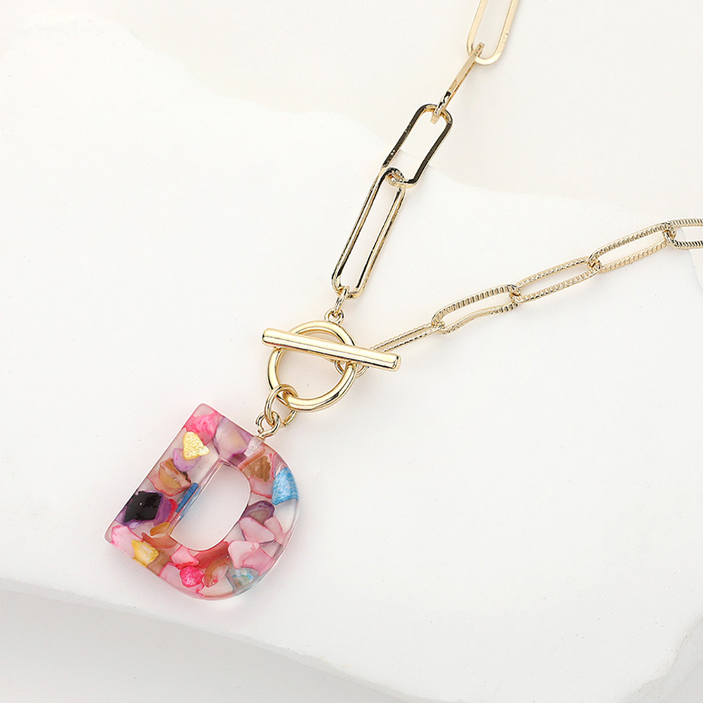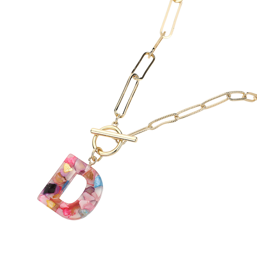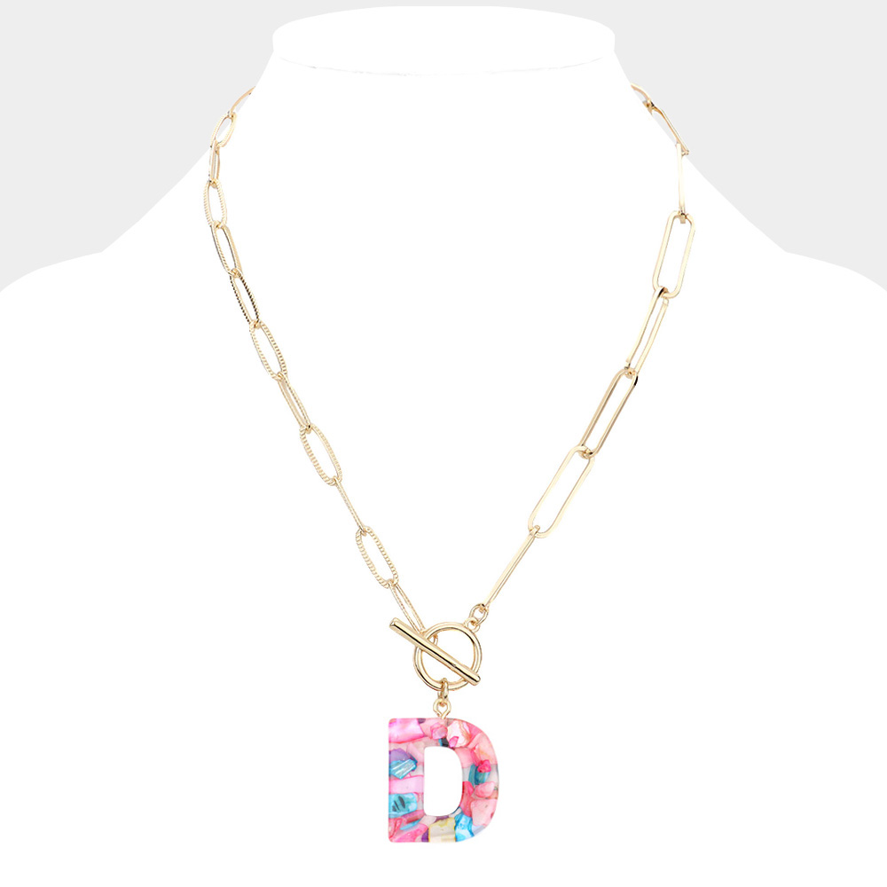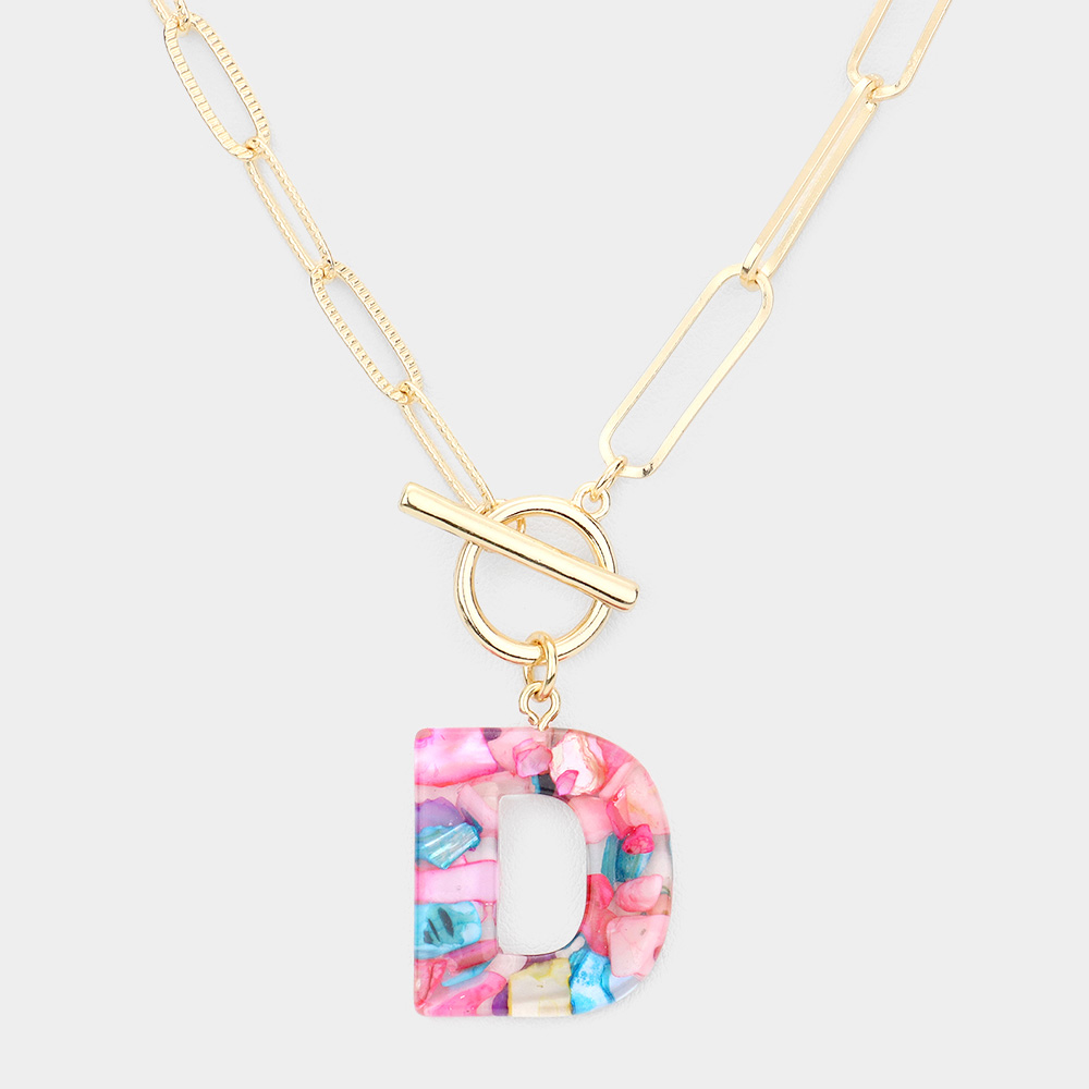 -D- Colorful Initial Monogram Pendant Toggle Necklace