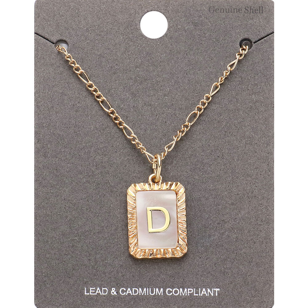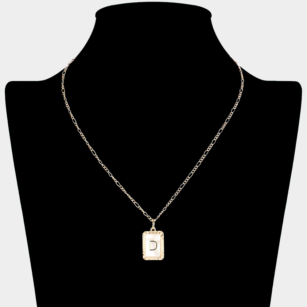 -D- Initial Monogram Genuine Shell Rectangle Pendant Necklace